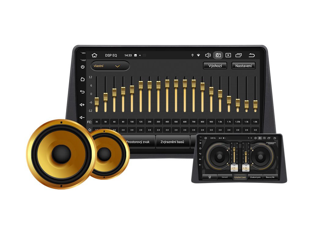 ✔️ Intuitívne nastavenia zvuku: vyváženie (ľavý a pravý kanál) a fader (predný a zadný).