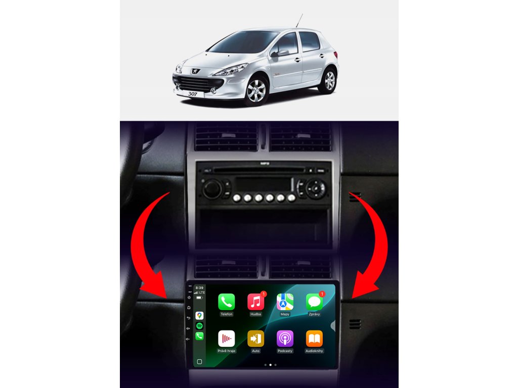 Špeciálne rádio plne prispôsobené pre Peugeot 307 2001-2007