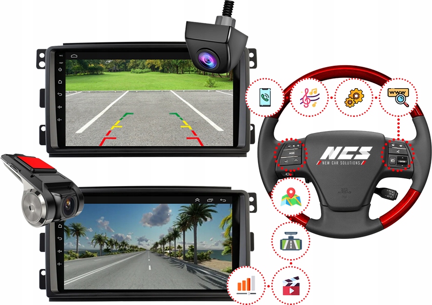 ✔️ Môžete používať bezproblémovú navigáciu s aplikáciami Google Maps a Yanosik, ktoré analyzujú premávku a umožňujú vám hlásiť kontroly na cestách a nehody. Môžete sa vopred rozhodnúť, či zmeníte trasu. GPS poloha sa sťahuje z vášho smartfónu!