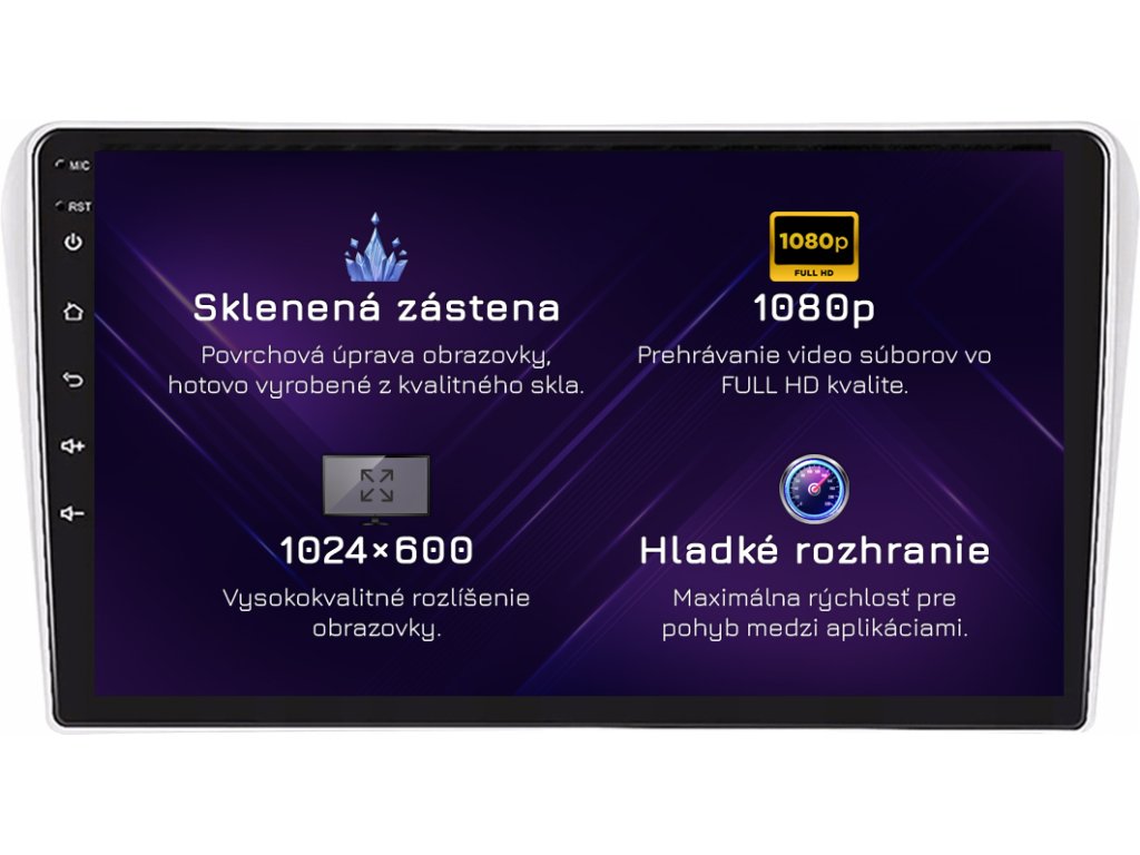 ⚠️ Rozlíšenie: 1024px x 600px = Širokouhlý Super VGA. Najobľúbenejší štandard zobrazenia pre špičkové rádiá. Videá sa prehrávajú v HD kvalite.