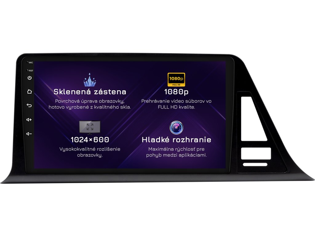 ⚠️ Rozlíšenie: 1024px x 600px = Širokouhlý Super VGA. Najobľúbenejší štandard zobrazenia pre špičkové rádiá. Videá sa prehrávajú v HD kvalite.