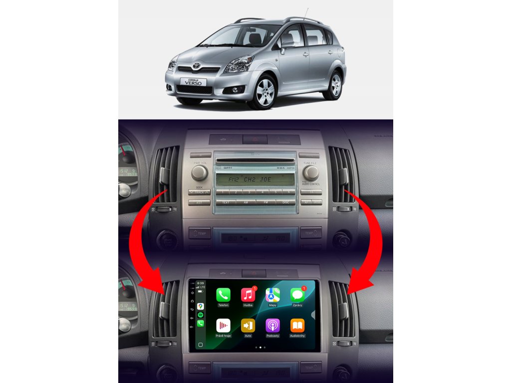 Špeciálne rádio plne prispôsobené pre Toyota Corolla Verso 2004-2009