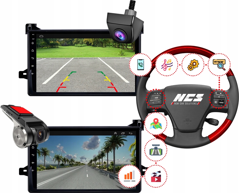 ✔️ Môžete používať bezproblémovú navigáciu s aplikáciami Google Maps a Yanosik, ktoré analyzujú premávku a umožňujú vám hlásiť kontroly na cestách a nehody. Môžete sa vopred rozhodnúť, či zmeníte trasu. GPS poloha sa sťahuje z vášho smartfónu!