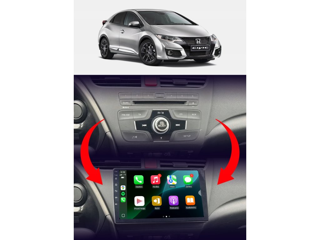 Špeciálne rádio NCS ZQ9 plne prispôsobené na prevádzku vo vozidle Honda Civic IX 2012-2017
