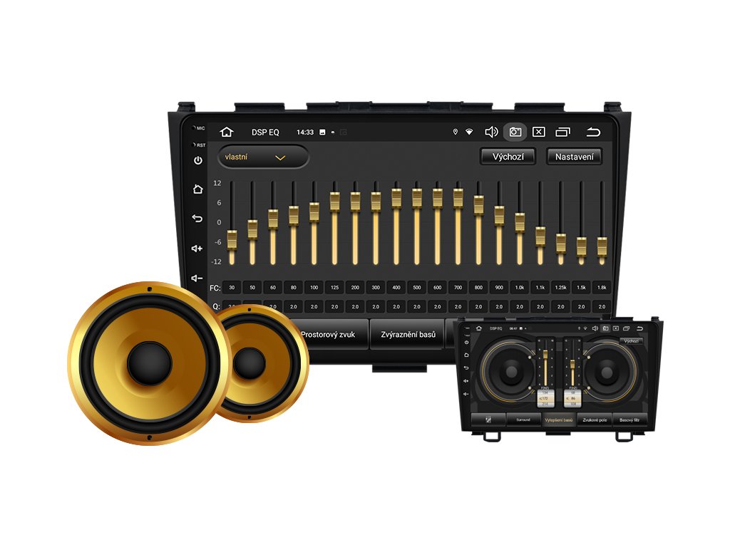 ✔️ Intuitívne používanie nastavení zvuku: vyváženie (ľavý kanál, pravý kanál) a fader (predný a zadný).