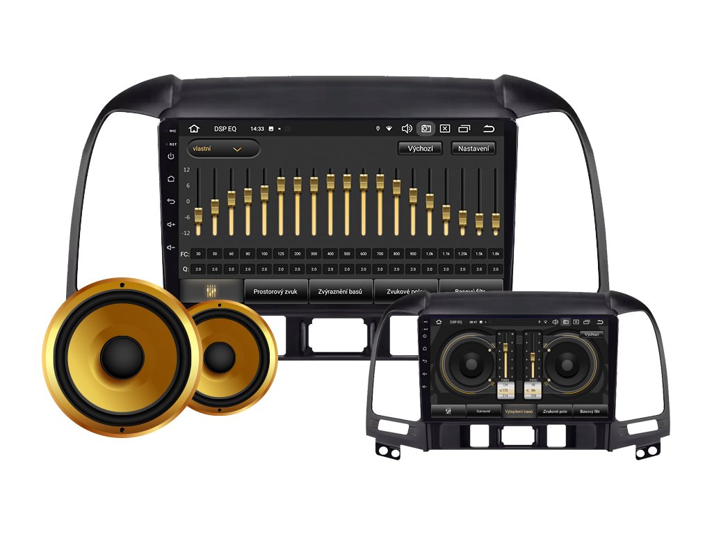 ✔️ Intuitívne používanie nastavení zvuku: vyváženie (ľavý kanál, pravý kanál) a fader (predný a zadný).