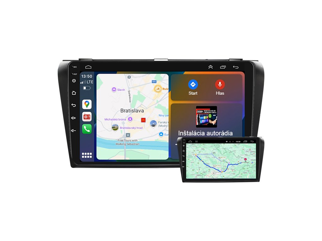 Používajte viacero navigačných aplikácií. Modul GPS automaticky sleduje vašu polohu. Predinštalovaná aplikácia Google Maps. Možnosť stiahnuť akúkoľvek navigačnú aplikáciu kompatibilnú so systémom Android.