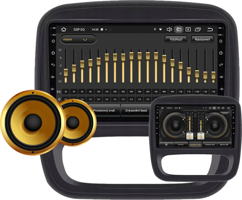 ✔️ Intuitívne používanie nastavení zvuku: vyváženie (ľavý kanál, pravý kanál) a fader (predný a zadný).