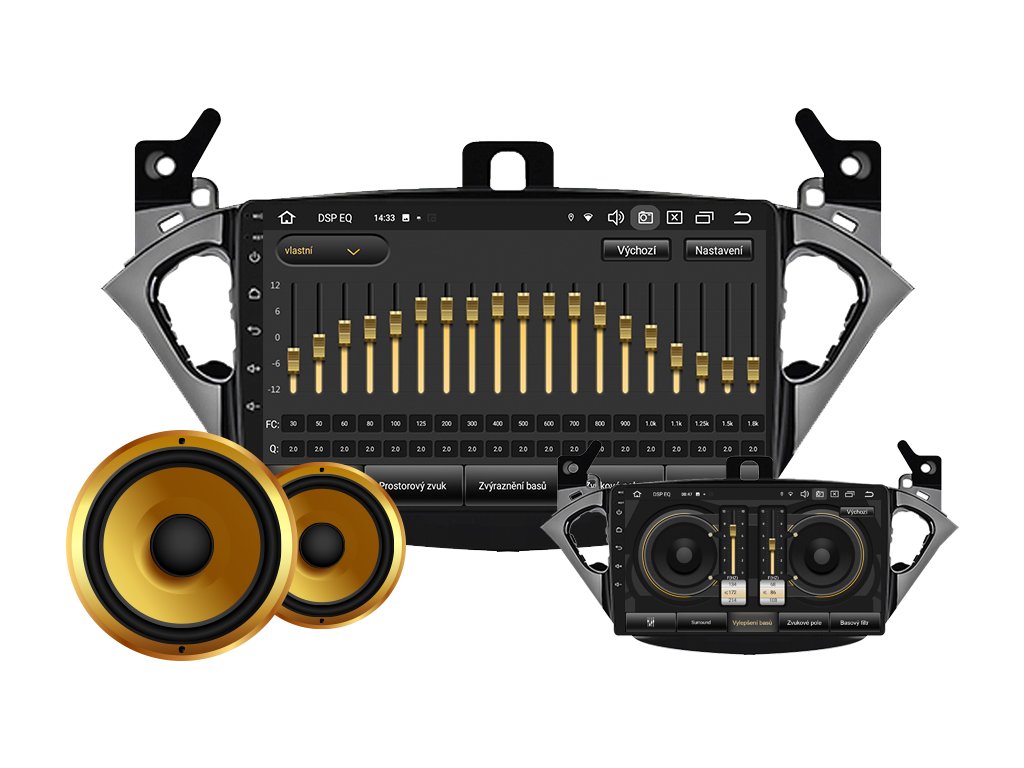 ✔️ Intuitívne používanie nastavení zvuku: vyváženie (ľavý kanál, pravý kanál) a fader (predný a zadný).