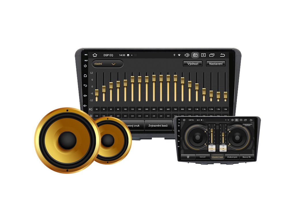 ✔️ Intuitívne používanie nastavení zvuku: vyváženie (ľavý kanál, pravý kanál) a fader (predný a zadný).