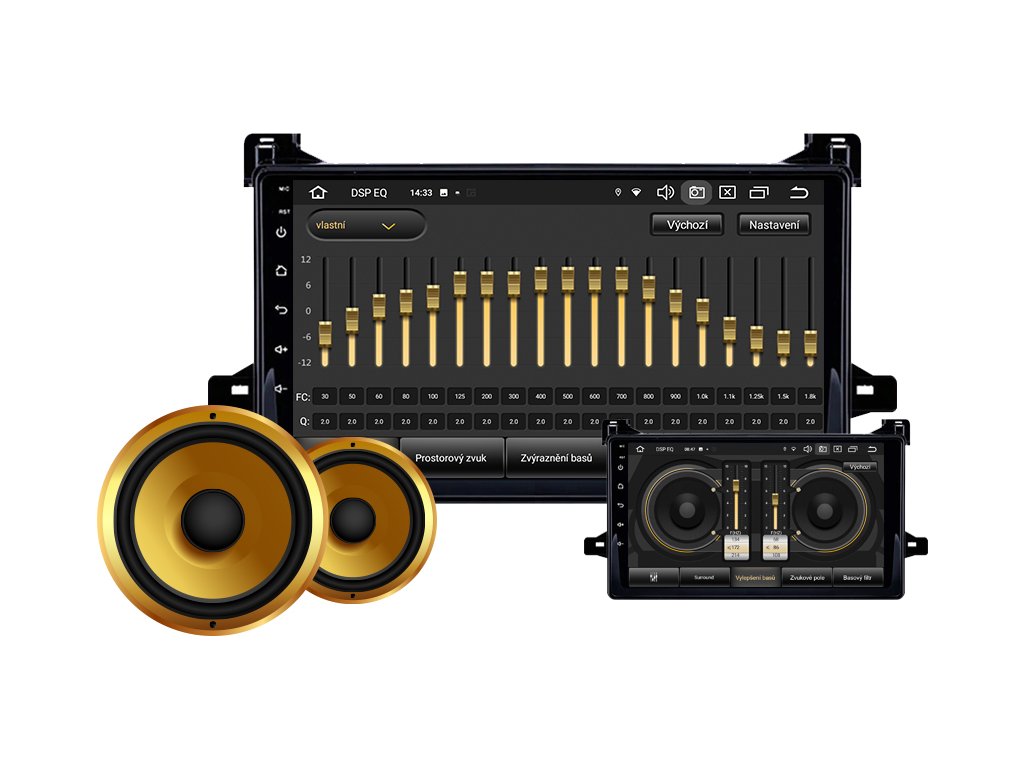 ✔️ Intuitívne používanie nastavení zvuku: vyváženie (ľavý kanál, pravý kanál) a fader (predný a zadný).