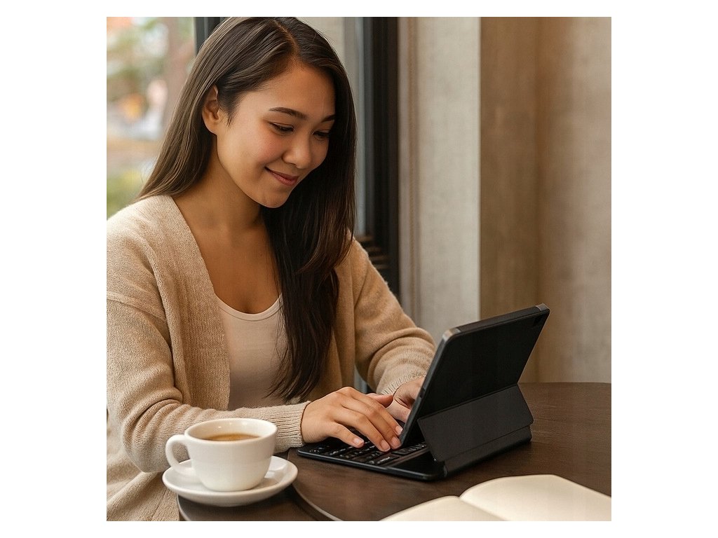 ✔️ Práca na diaľku – pohodlné písanie na tablete, ideálne na e-maily, dokumenty a chaty.