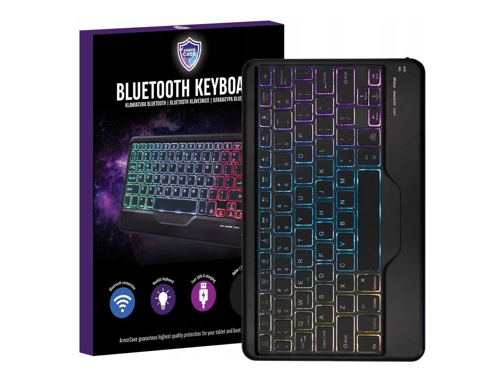 Vďaka rovnomerne rozmiestneným LED diódám je každý kláves dobre viditeľný, čo umožňuje rýchlejšie a presnejšie písanie. Dynamické svetelné efekty dodávajú klávesnici jedinečný charakter a zabezpečujú, že sa dokonale hodí k tabletu aj k modernému mobilnému pracovnému prostrediu.
