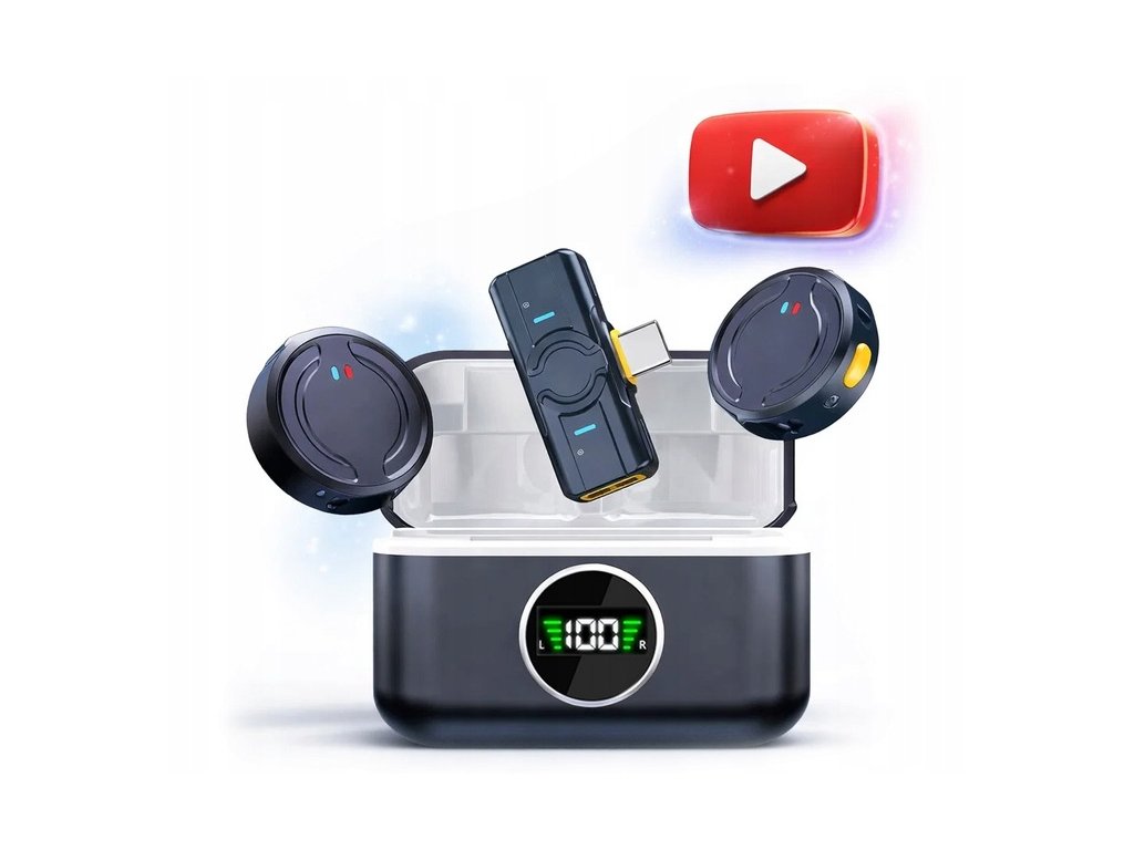 Bezdrôtová sada 2 klopových mikrofónov 2,4 GHz USB-C Android iOS