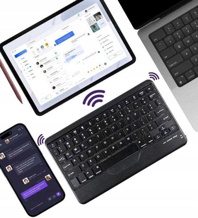 Klávesnica je plne univerzálna – funguje s každým tabletom vybaveným Bluetooth, bez ohľadu na operačný systém.