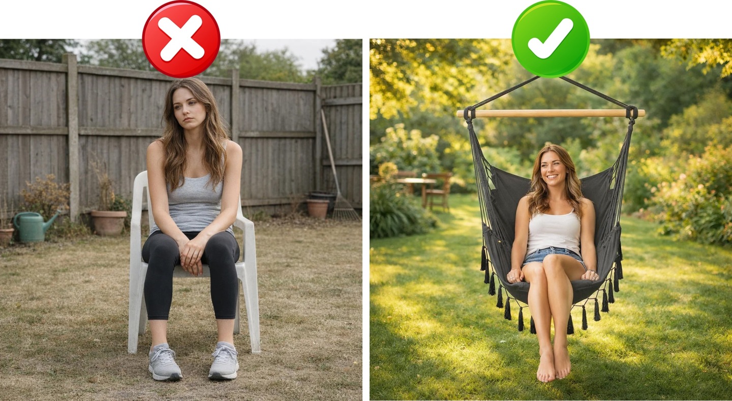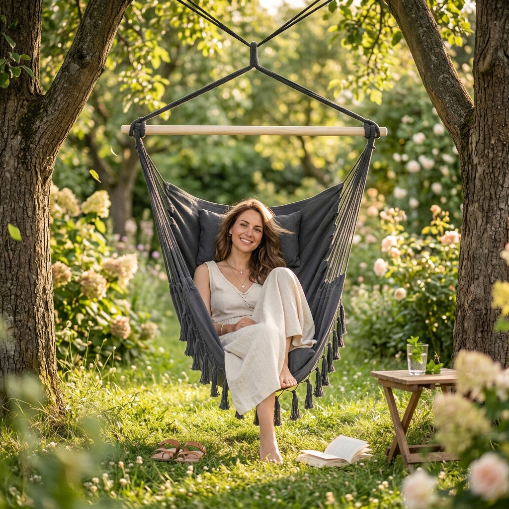 Pohodlne sa usaď, jemne sa hojdaj a uži si chvíľu len pre seba – na balkóne, v záhrade alebo v pohodlí domova ❤️