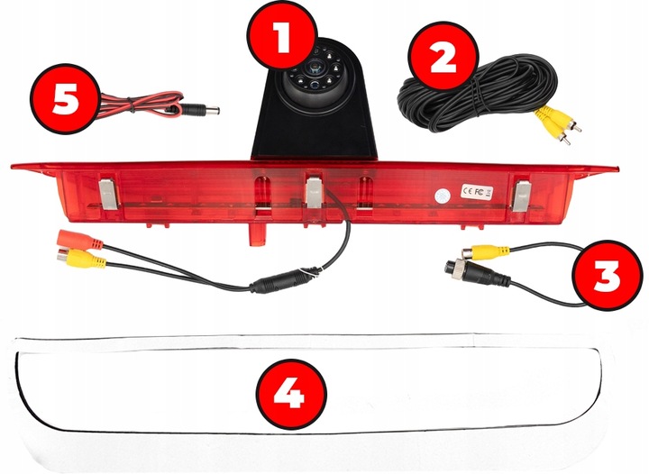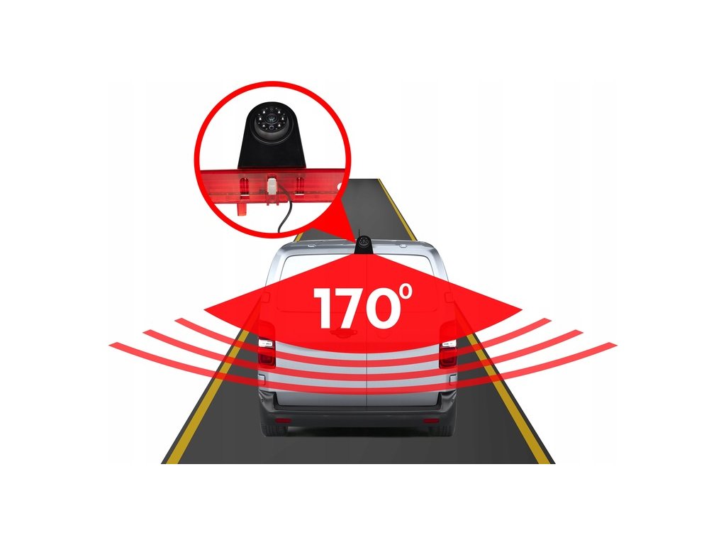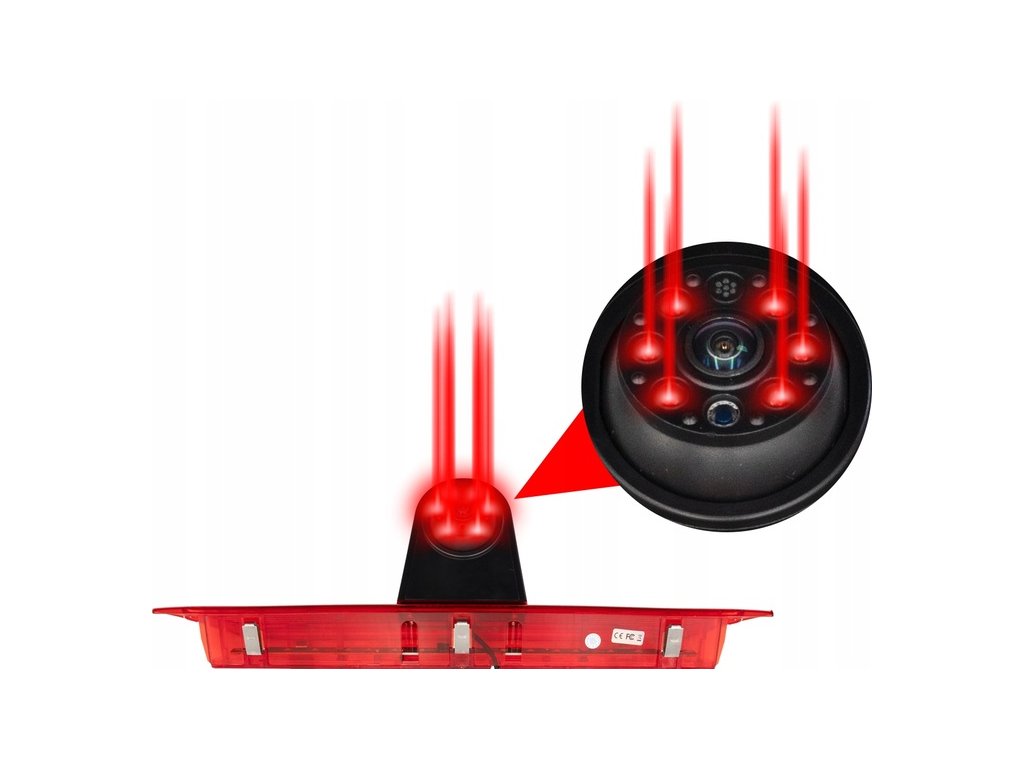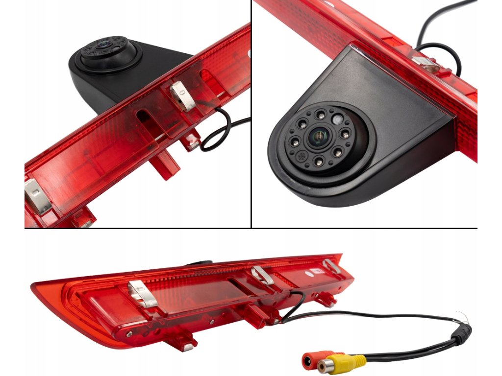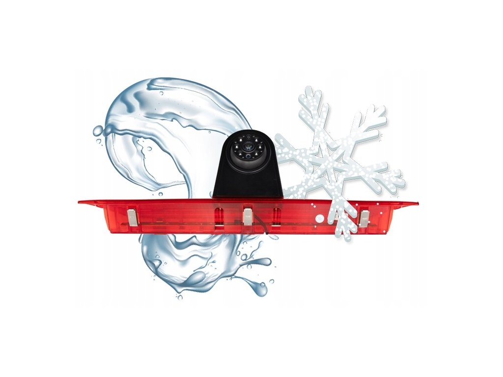 - Cúvacia kamera s funkciou tretieho brzdového svetla STOP – je potrebné ju pripojiť k originálnemu napájaciemu vodiču svetla.