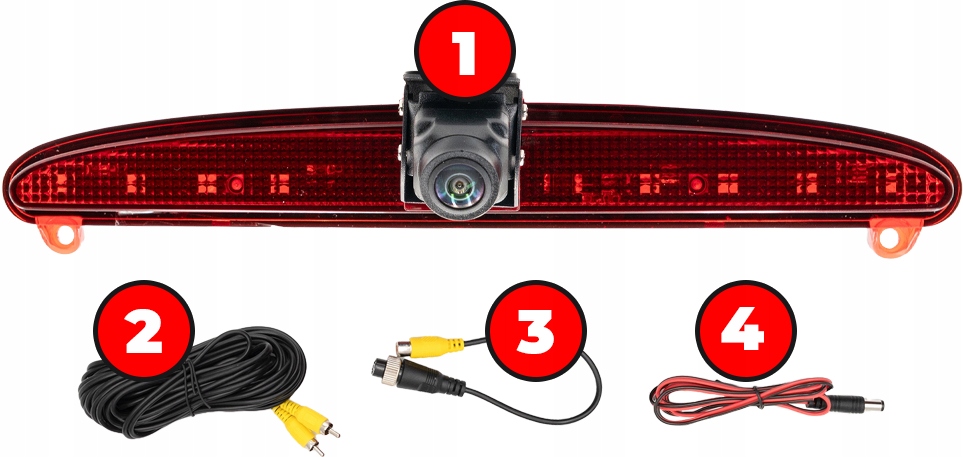 - Cúvacia kamera s funkciou tretieho brzdového svetla STOP – pripojiť k originálnemu napájaciemu vodiču svetla.