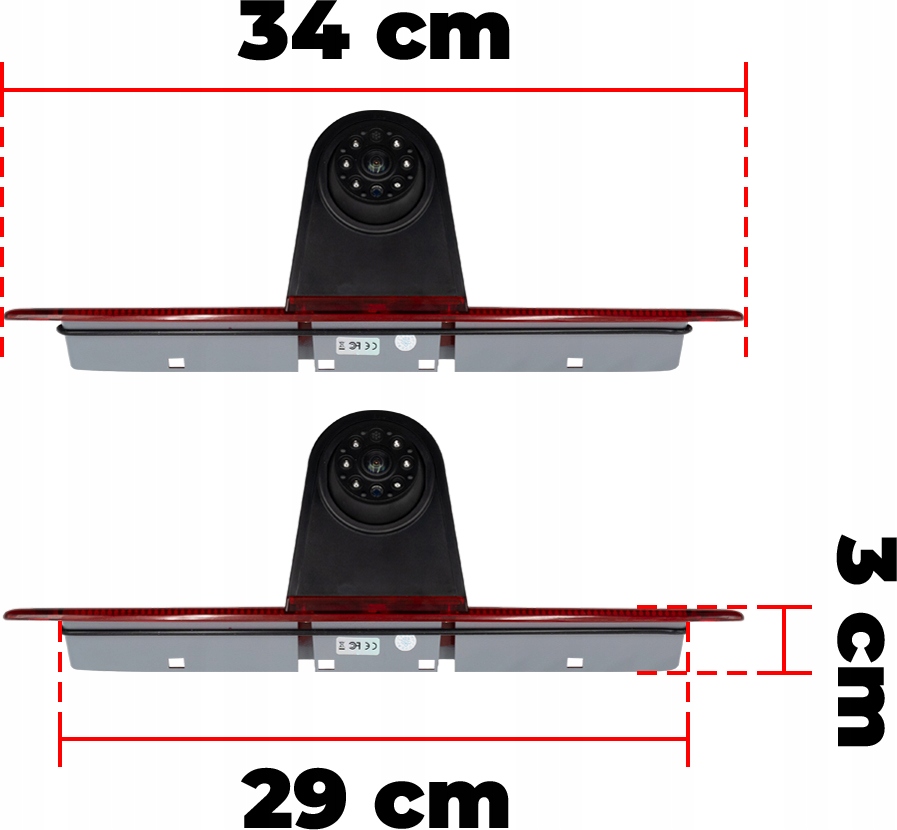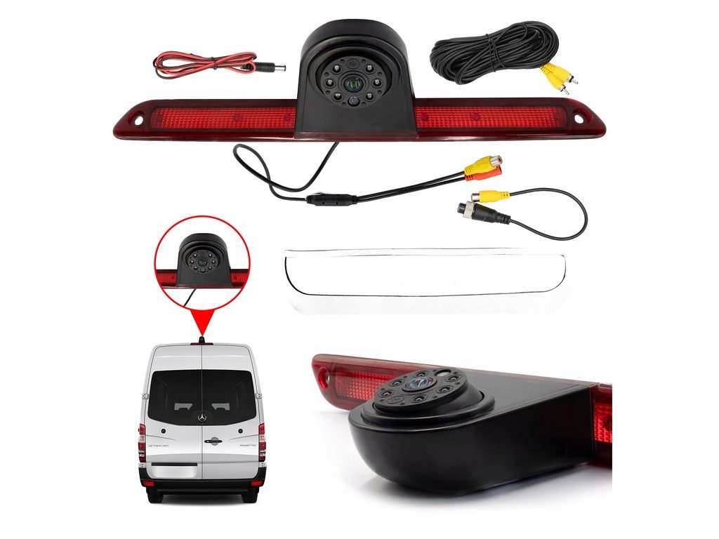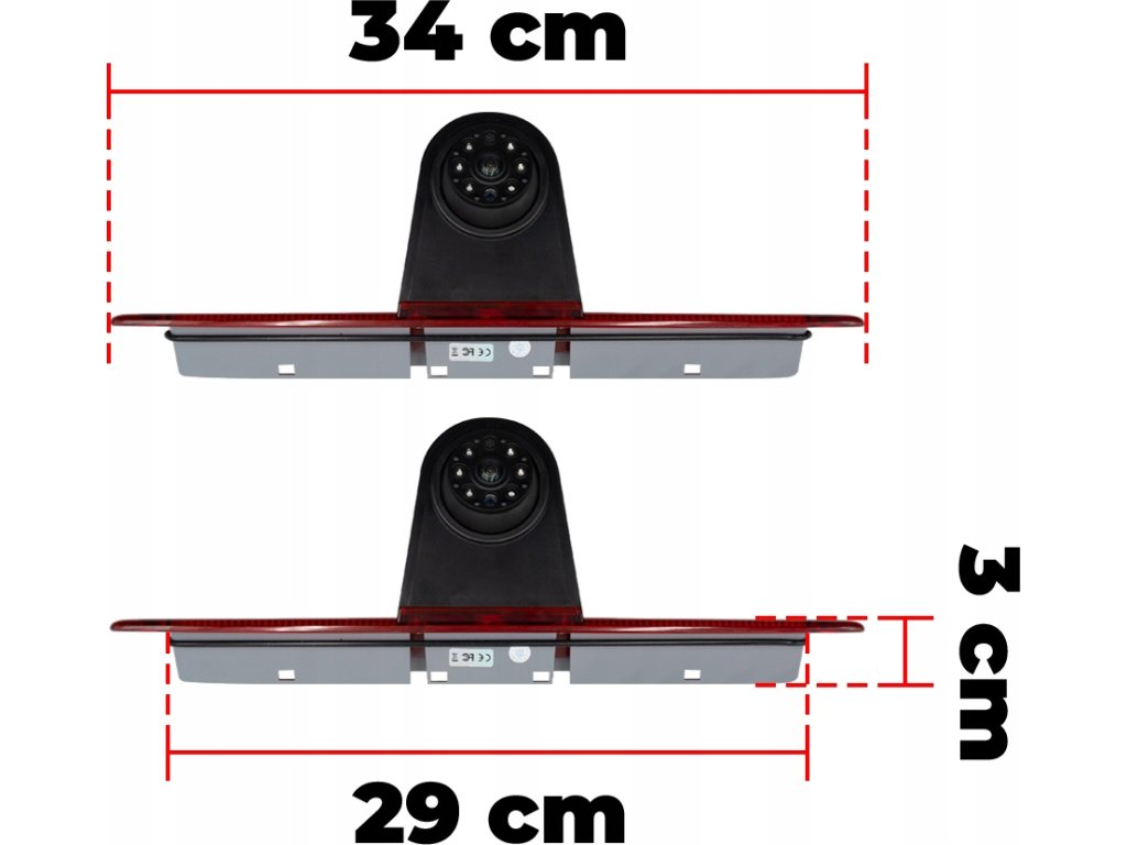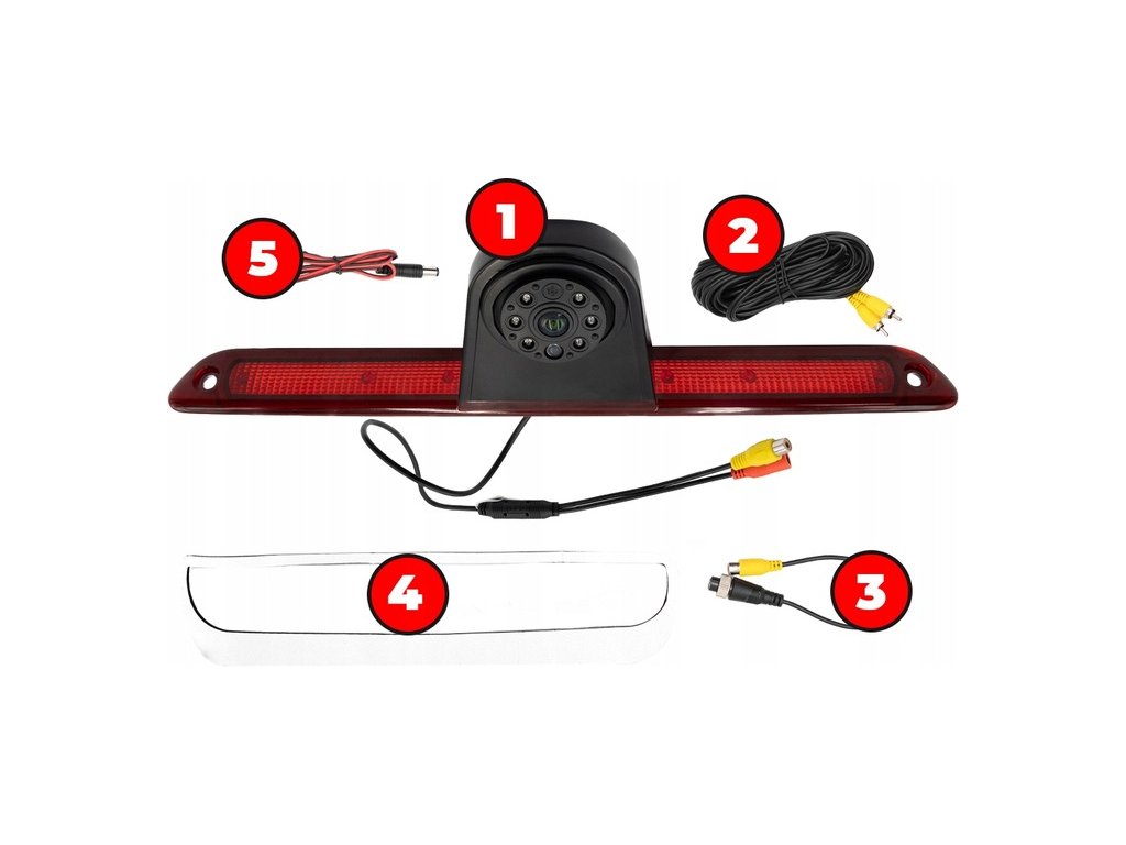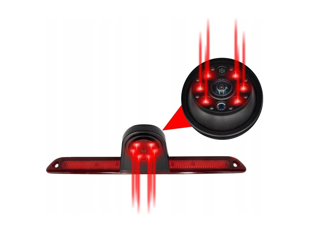 - Cúvacia kamera s funkciou tretieho brzdového svetla STOP – je potrebné ju pripojiť k originálnemu napájaciemu vodiču svetla.