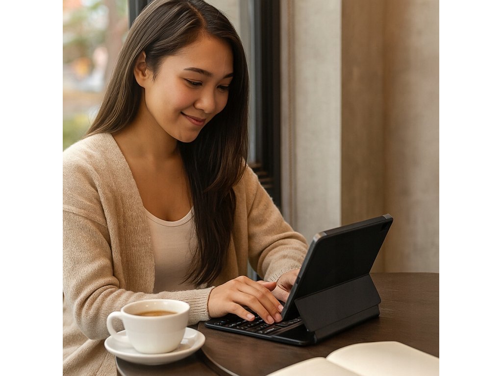 ✔️ Práca na diaľku – pohodlné písanie na tablete, ideálne na e-maily, dokumenty a chaty.