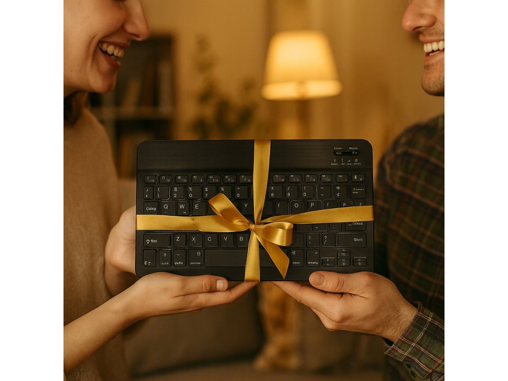 Hľadáte praktický, moderný a skutočne užitočný darček? Táto bezdrôtová klávesnica je perfektnou voľbou. Je univerzálna, štýlová a využije ju každý — žiak, študent, kancelársky pracovník či ktokoľvek, kto jednoducho ocení pohodlie pri používaní tabletu.