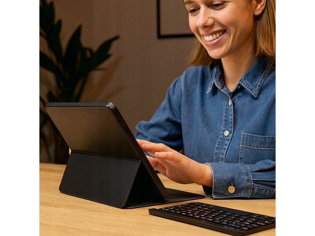 ✔️ Práca na diaľku – pohodlné písanie na tablete, ideálne na e-maily, dokumenty a chaty.