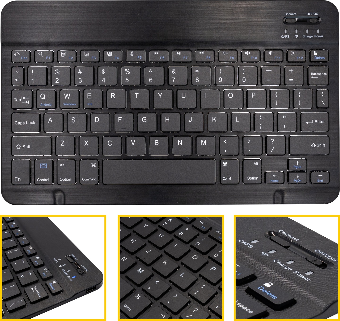 Vďaka svojej univerzálnej konštrukcii klávesnica výborne spolupracuje s akýmkoľvek typom puzdra — otočným, skladacím či elegantnejším rámovým modelom.