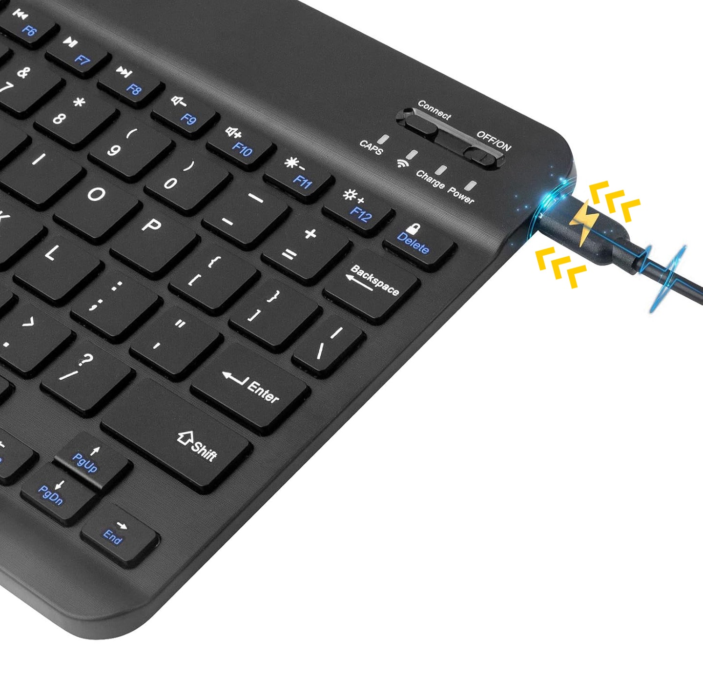 Klávesnica je vybavená moderným portom USB-C, vďaka čomu je nabíjanie rýchle, jednoduché a kompatibilné s najpopulárnejšími nabíjačkami na trhu.