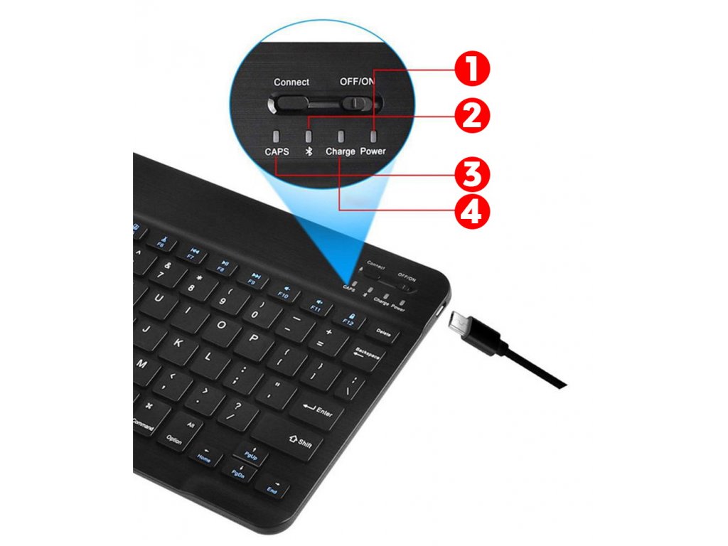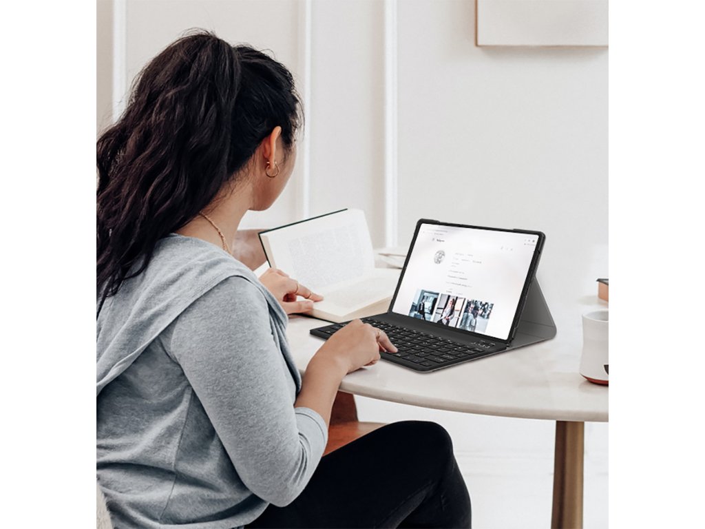 Veľmi kvalitná bezdrôtová bluetooth klávesnica s púzdrom priamo určená pre Samsung Galaxy Tab S7 11" a Samsung Galaxy Tab S8 11" vyrobená z kvalitného plastu, ktorý je príjemný na dotyk. Tablet je zaistený v samostatnom, gumovom obale. Praktické zatváranie s magnetom, ktorý navyše zaisťuje celé gumové puzdro. Všetky sloty a tlačidlá na tablete sú odkryté. Obal má magnet, ktorý umožňuje pripojenie klávesnice k púzdru a zabraňuje jej nechcenému pohybu.