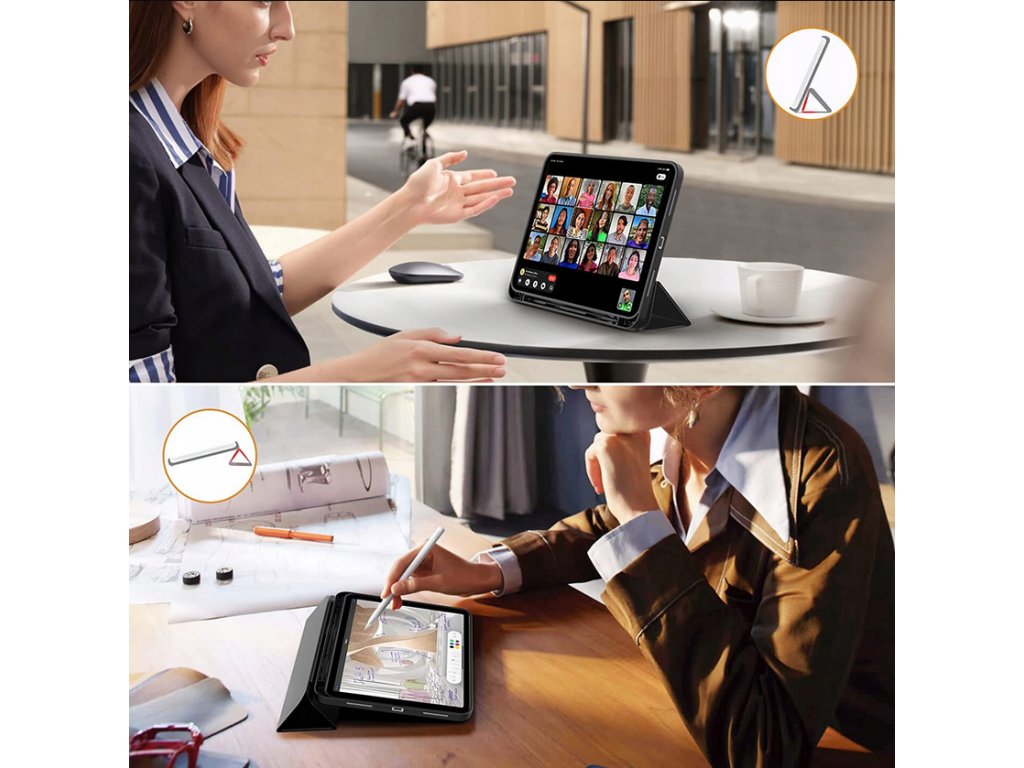 Púzdro má integrovaný držiak na stylus Apple Pencil, ktorý uľahčuje používanie tabletu pri maľovaní, kreslení atď. Špeciálne otvory na zadnej strane puzdra uľahčujú vytiahnutie stylusu.