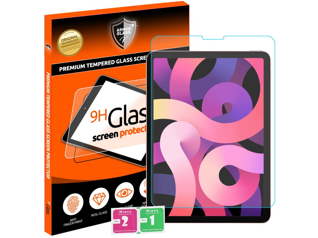 Nové, špeciálne tvrdené sklo ArmorGlass pre tablety Apple iPad Air 4 10,9" a Apple iPad Air 5 Modely: A2589, A2072, A2591, A2325, A2324, A2316, A2588, A2324, A2072, A2325, A2316.