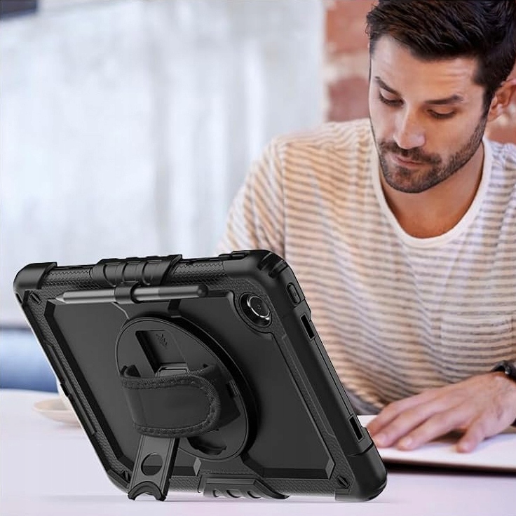 Puzdro je vyrobené z vysoko kvalitných a odolných materiálov. Má presné výrezy pre všetky sloty, konektory, tlačidlá a kamery. Kryt je ľahký, no zároveň pevný, pôsobí elegantne a spoľahlivo chráni tvoj tablet pred mechanickým poškodením, vodou a prachom.