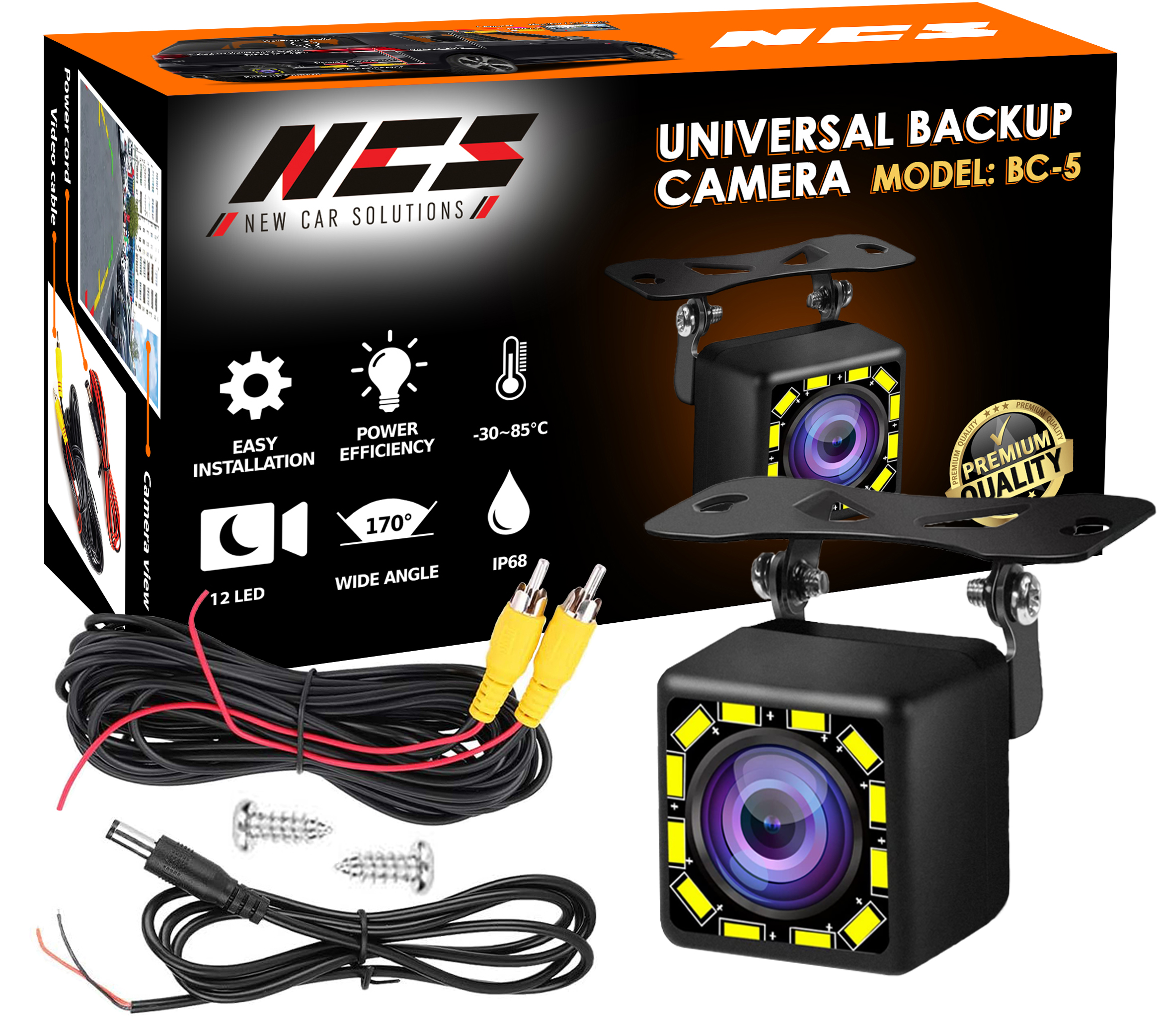 ☀️ Parkovacia kamera NCS BC-5 pre všetky vozidlá s 12 LED a IR