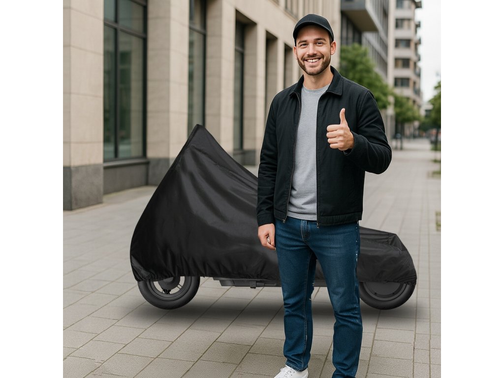 Nový, vodeodolný poťah na kolobežku v čiernej farbe. Blokuje UV lúče, chráni pred znečistením a zabraňuje poškodeniu. Poskytuje ochranu kolobežky v náročných poveternostných podmienkach, ako sú dážď, sneh, ostré slnko, vietor a pod.