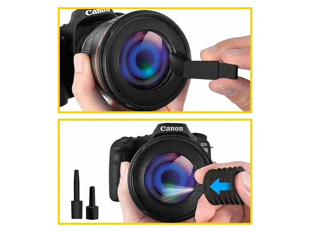 ⚠️ Objektivy jsou nejcitlivější součástí tvé elektroniky, proto než je otřeš hadříkem, nezapomeň nejdřív odfouknout prachové částice, aby nedošlo k poškrábání povrchu objektivu.