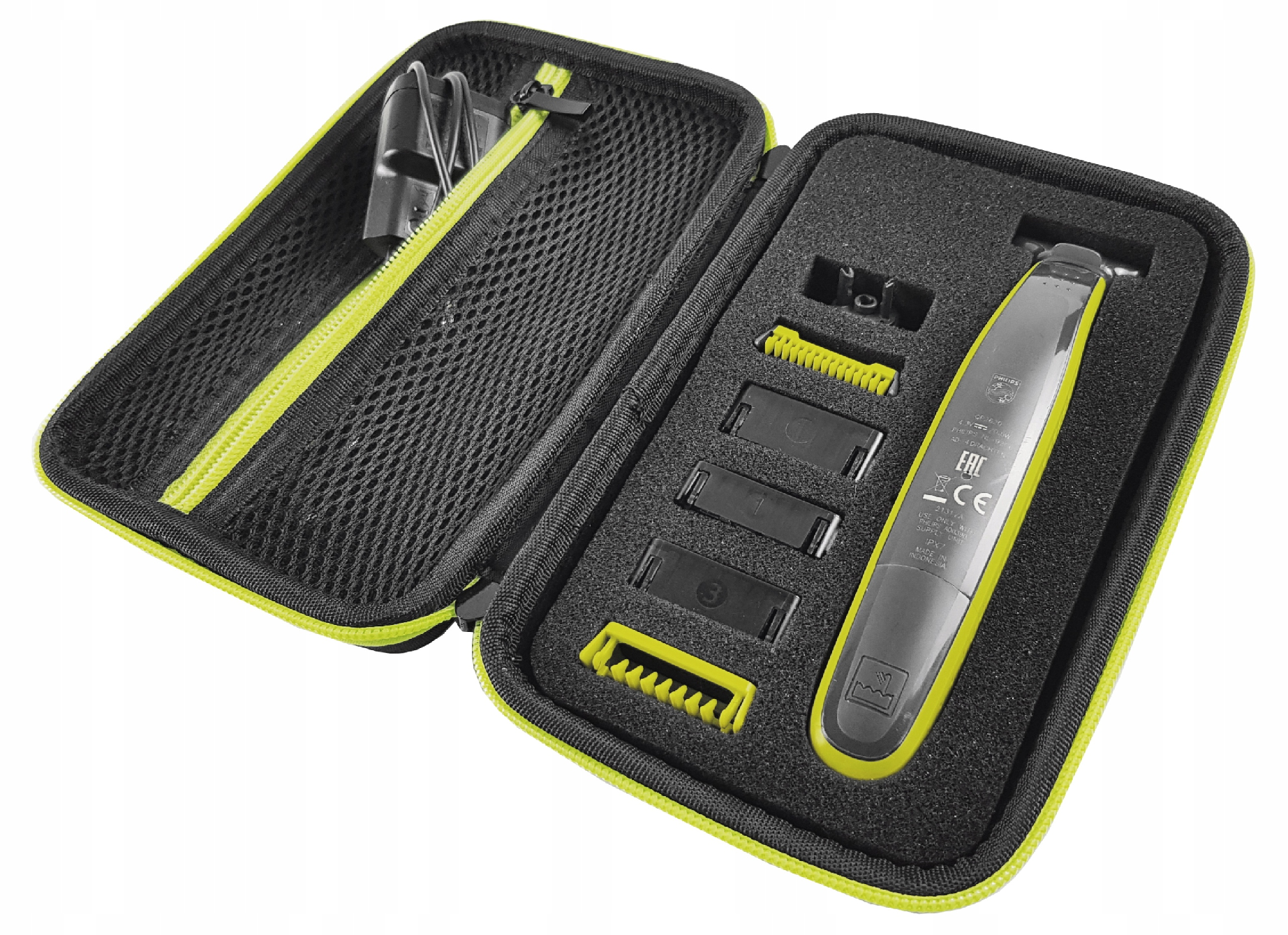 Nové, zosilnené puzdro s kvalitným zipsom určené pre strojčeky Philips OneBlade a príslušenstvo, vyrobené z vysoko kvalitného materiálu. Kryt je veľmi odolný a dokonale chráni váš holiaci strojček/zastrihávač pred mechanickým poškodením, nárazmi, vlhkosťou a prachom. Vnútri je špeciálna pena, ktorá chráni pred poškodením a uľahčuje uloženie čepelí.