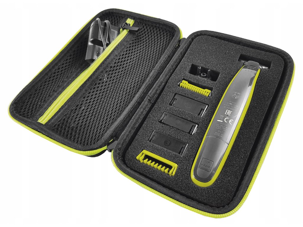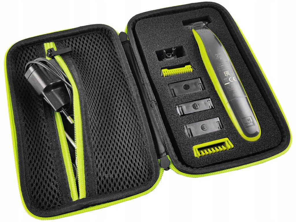 Nové, zosilnené puzdro s kvalitným zipsom určené pre strojčeky Philips OneBlade a príslušenstvo, vyrobené z vysoko kvalitného materiálu. Kryt je veľmi odolný a dokonale chráni váš holiaci strojček/zastrihávač pred mechanickým poškodením, nárazmi, vlhkosťou a prachom. Vnútri je špeciálna pena, ktorá chráni pred poškodením a uľahčuje uloženie čepelí.