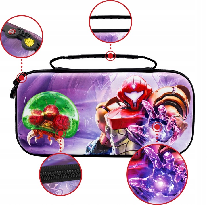 Ak ťa fascinujú sci-fi atmosféra, prieskum cudzích planét a osamelé misie vo vesmíre a séria Metroid ťa sprevádza už roky — toto puzdro je vytvorené presne pre teba. Nie je to len praktické príslušenstvo na ochranu konzoly, ale aj štýlový prvok zbierky každého fanúšika Metroidu.