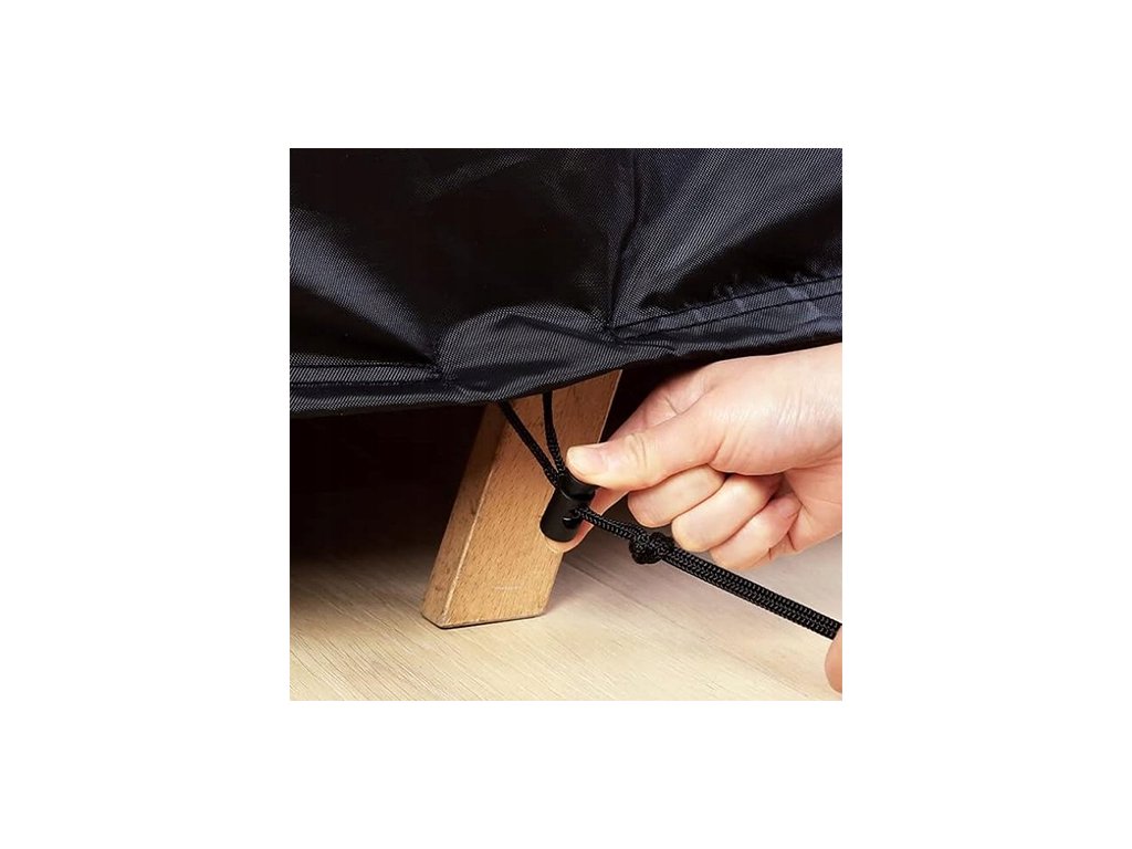 Poťah je vybavený sťahovacou šnúrkou pre ešte lepšiu ochranu proti vetru. Navyše špeciálne pracky uľahčujú upevnenie v spodnej časti nábytku – vďaka týmto háčikom si môžete byť istí, že váš nábytok zostane bezpečne chránený.