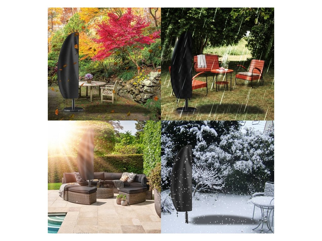 NEZABUDNITE! Aj keď záhradné slnečníky samy o sebe poskytujú ochranu pred dažďom a tieň v horúcich dňoch, dlhodobé vystavenie slnečnému žiareniu, vlhkosti a vysokým teplotám počas celej sezóny môže viesť k degradácii materiálu. Používajte poťah vždy, keď slnečník nepoužívate, aby ste predĺžili jeho životnosť a zachovali jeho účinnosť.