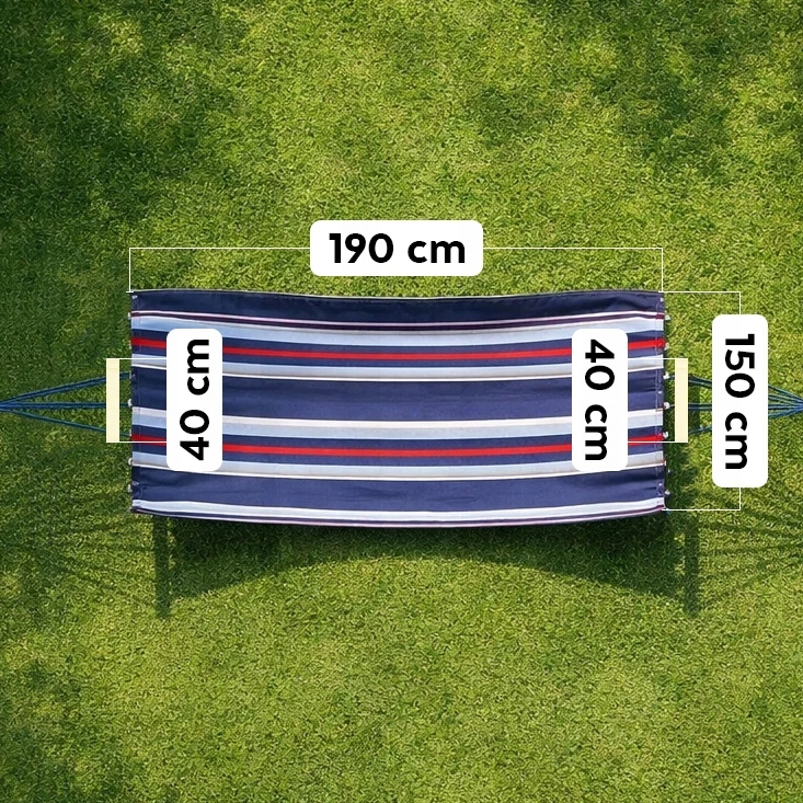 Hamak ponúka veľký priestor na odpočinok, vďaka čomu sa môžete pohodlne natiahnuť a relaxovať.