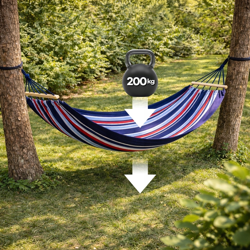 Stačí ho upevniť medzi dva stabilné body – napr. stromy alebo stĺpiky – a okamžite si užívať komfortné miesto na oddych.